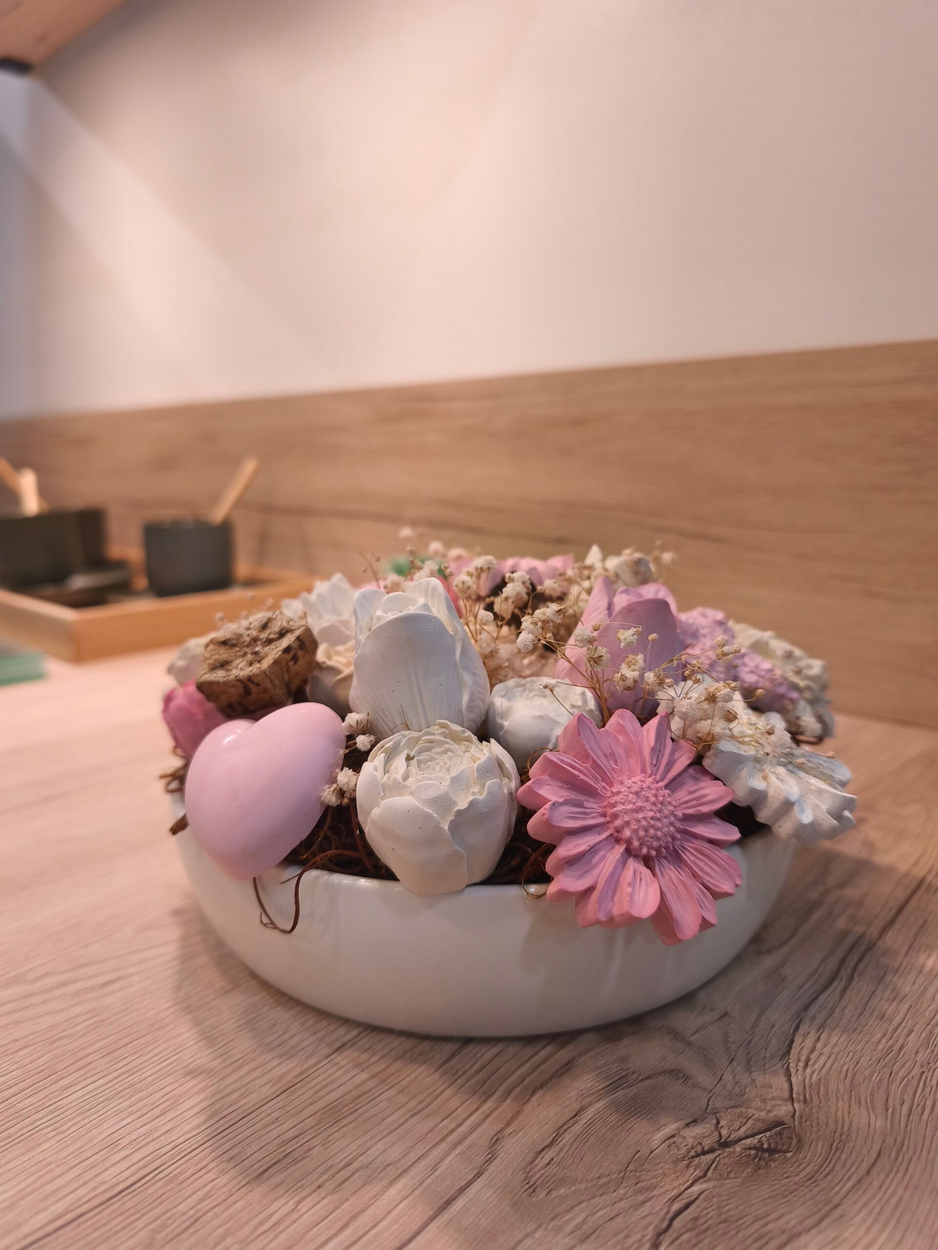 - 18 fleurs en plâtre parfumé, aux formes et textures variées
